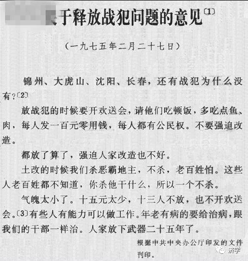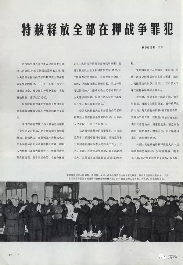 李克勤(jixuie)题记:毛主席领导的解放台湾,从战略上看,那是文武兼备的,武装斗争无疑是主要的,而文化攻势一直都是没有间断的,并且文化攻势具有持续性稳定性,常常会借助于某个事件掀起一场汹涌澎湃的波澜,从而鼓舞我们和我们的朋友的士气,打击敌对势力的威风。1975年2月到3月,毛主席果断决策特赦释放全部在押的国民党战犯,无疑是一场解放台湾的文化攻势。