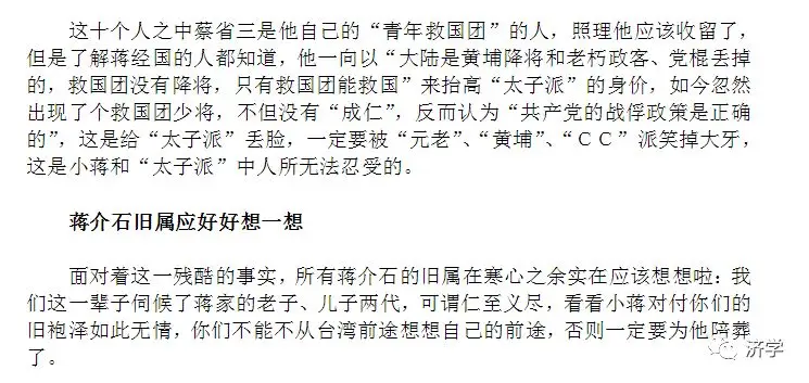台湾的“太子派”中人,你们今天虽然是新贵,但明天就可能变成蔡省三,与其等着蒋经国抛弃你们,不如早日认清台湾前途,选择自己的生路。