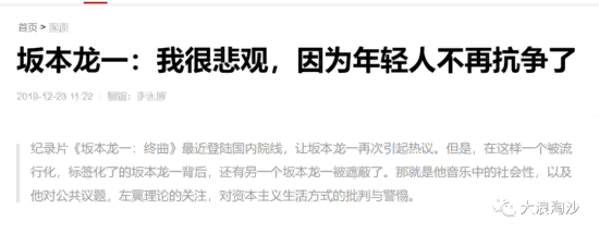坂本龙一也很悲观,他说年轻人不再抗争了。OkY品论天涯网