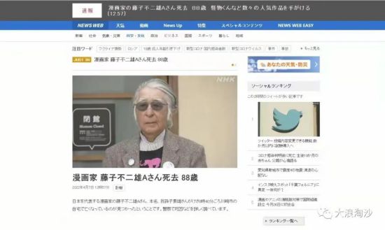 让我想起整整一年前——去年的四月份,我们也告别了一位杰出的漫画家,《毛泽东传》的作者——藤子不二雄A先生。OkY品论天涯网