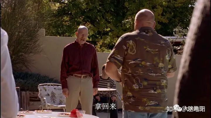 所以在庆祝老白病情好转的party上,他直接对汉克发难,直言这是“我的家,我的儿子”,这其实是一个做题家被雄性气质碾压已久的怨气,并不是什么老白病得脑子不好使了。