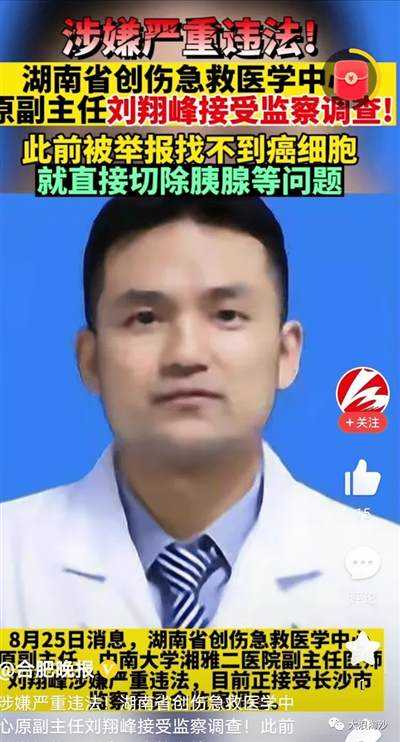 去年有一个比较有代表性的例子,就是“湘雅恶魔”事件,这件事情现在还没有下文,我简单来帮大家回忆一下,他干过很多令人发指的事件,比如一个检查有没有癌细胞的手术,直接把病人的胰腺脾脏都切除了,然后骗家属说这是病变器官。