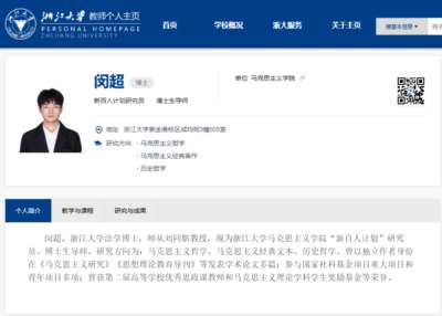 2025年12月,据浙江大学官网信息更新,26岁的闵超已成为浙江大学马克思主义学院“新百人计划”研究员、博士生导师。