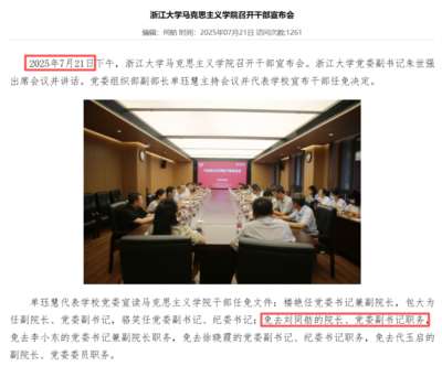 刘同舫卸任三个月后,他的学生正式入职浙江大学马克思主义学院,成为博士生导师。