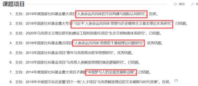 2016年,他主持过国家级“人类命运共同体思想若干基础理论问题研究”项目;