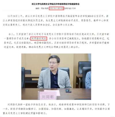 2021年11月19日,刘同舫开始担任浙江大学马克思主义学院院长,同年,闵超从郑州大学保研进入浙江大学马克思主义学院。