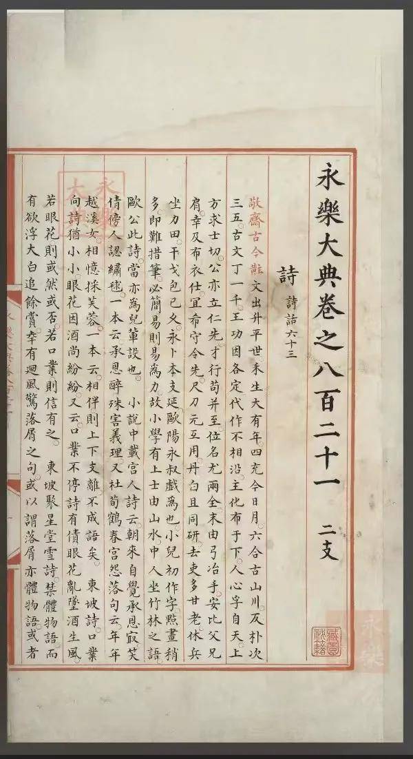 文运同国运相牵,文脉同国脉相连。《永乐大典》这样一部旷世巨作,历经岁月沧海,漂泊沉浮,令人唏嘘。而每一册《大典》的回归,都是中国文化史上的大事。笔者也相信,世上仍应有一些《大典》残卷未公之于众,等待着被找到并带回家。