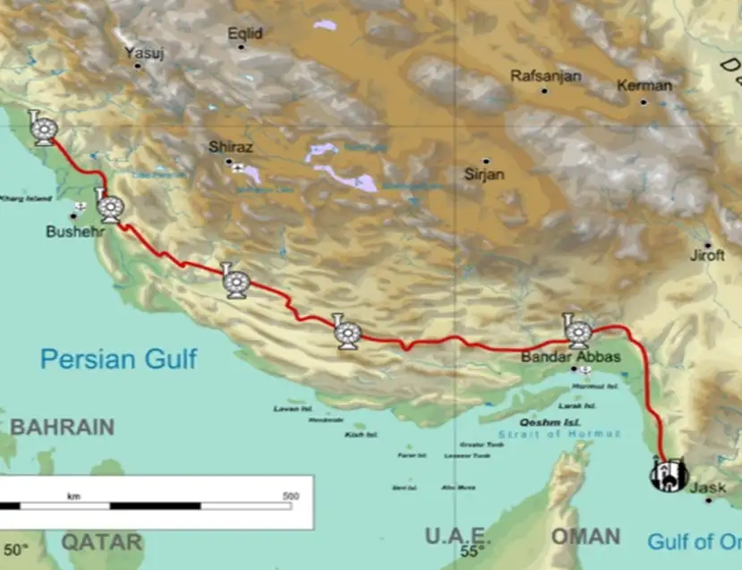 目前,伊朗已经建成起点从伊朗西南靠近主要油田(Goreh)通向贾斯克(Jask)和阿曼湾出口终端的石油运输管道,目的就是让一部分石油出口绕开霍尔木兹、直接从阿曼湾出海。虽然利用率有限、后期扩建输送能力也不理想,但这是伊朗唯一绕开霍尔木兹海峡的石油出海通道。