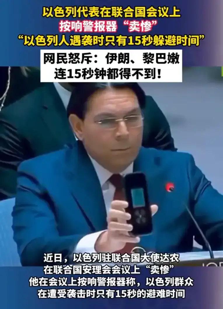 以色列驻联合国代表在安理会上卖惨。