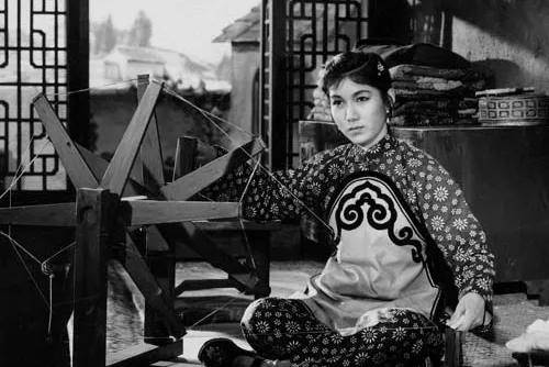 电影开幕时,刘巧儿在家纺线的剧照