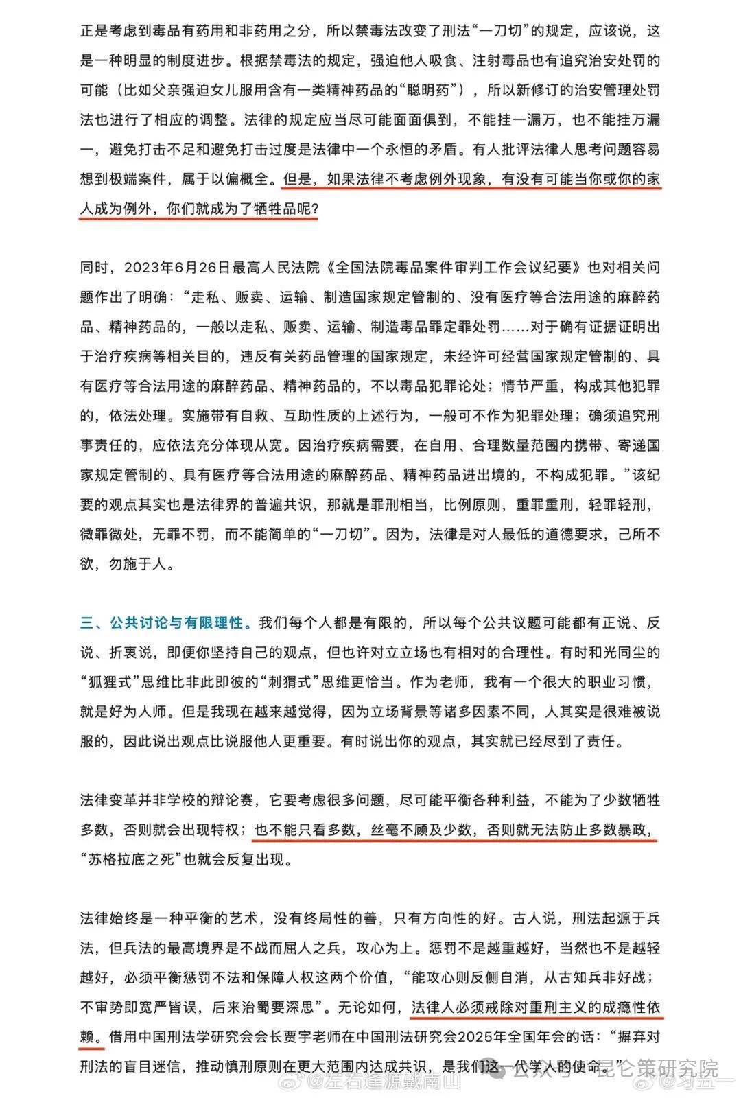 罗翔文章的深层问题,在于过度强调“法律技术理性”,而忽视“法律价值理性”。法律不仅是技术工具,更是价值载体。禁毒法律的价值,在于守护“健康文明生活方式”的社会主义核心价值观,维护“以人民为中心”的法治立场。