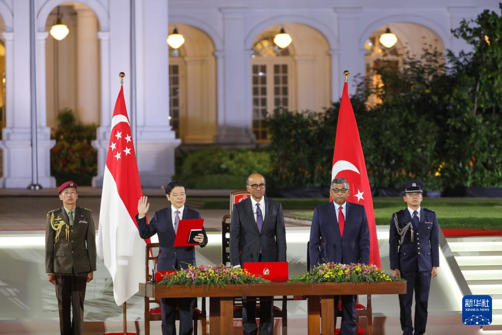 5月15日,黄循财(左二)出席在新加坡总统府举行的宣誓就职仪式。