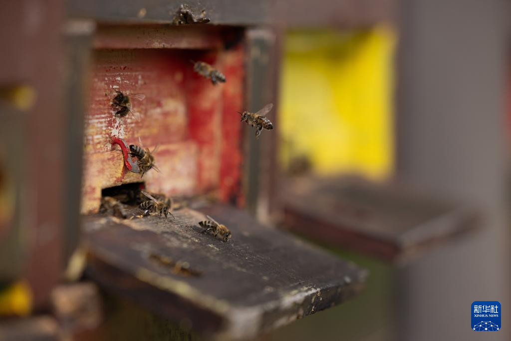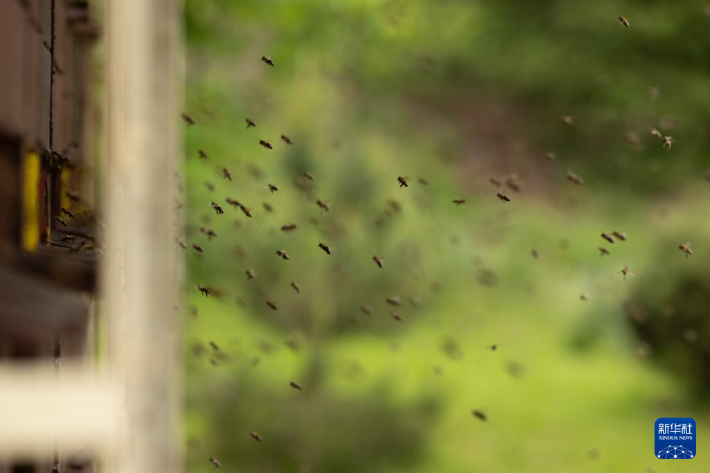 5月18日,在斯洛文尼亚波诺瓦·瓦斯村的一家养蜂场,蜜蜂飞回蜂房。