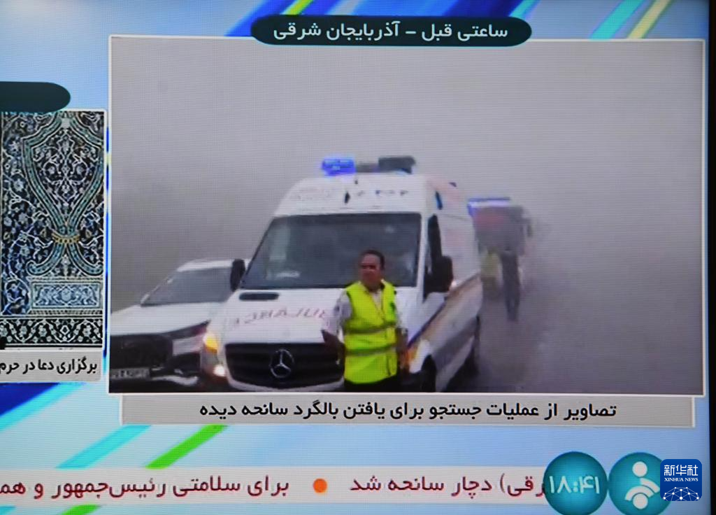 这是5月19日拍摄的伊朗国家电视台播放的事故现场附近搜寻画面。