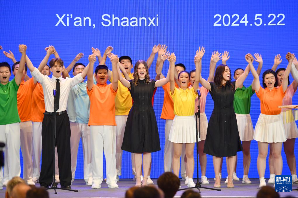 5月22日,中美两国学生在第14届中美旅游高层对话开幕式上合唱。