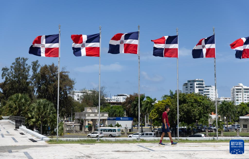 这是5月21日在多米尼加首都圣多明各拍摄的国旗广场。