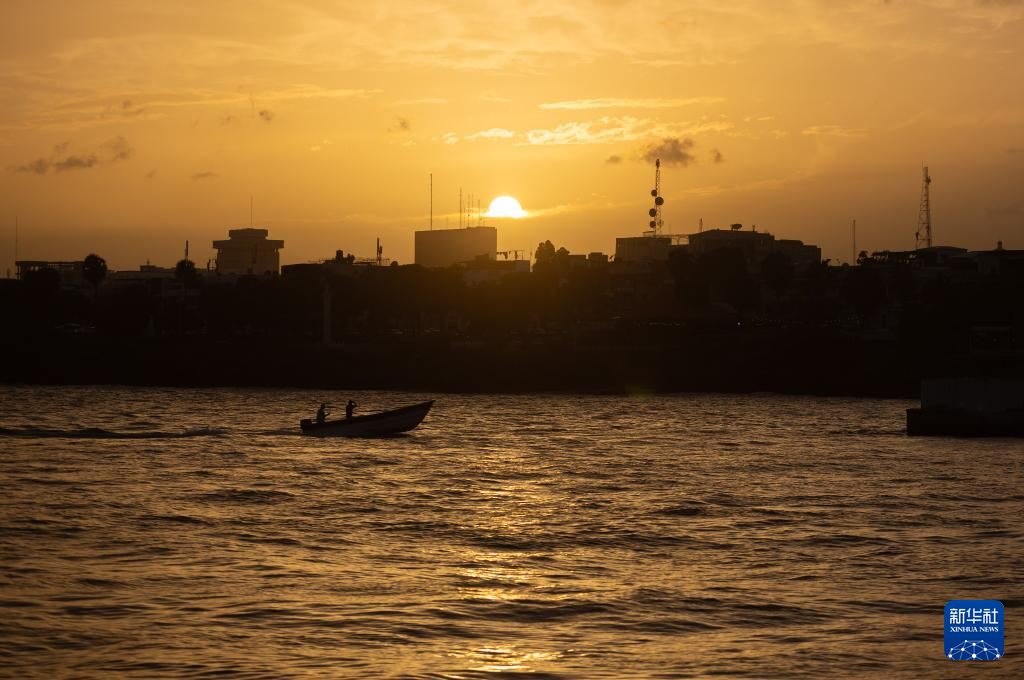 这是5月21日在多米尼加首都圣多明各的奥萨马河入海口附近拍摄的夕阳。