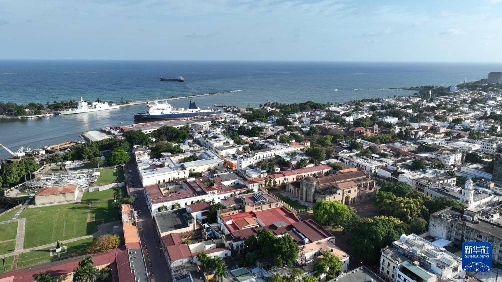 这是5月21日在多米尼加首都圣多明各拍摄的海岸线(无人机照片)。