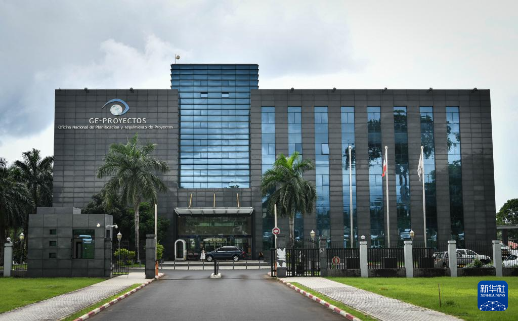 这是5月21日在赤道几内亚首都马拉博拍摄的赤道几内亚国家项目办大楼。