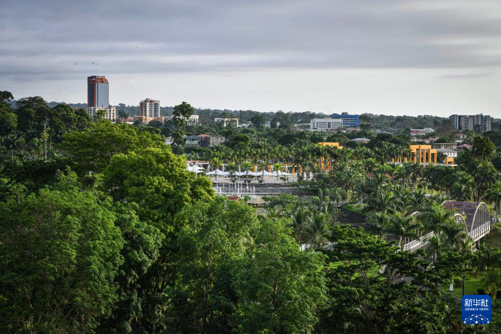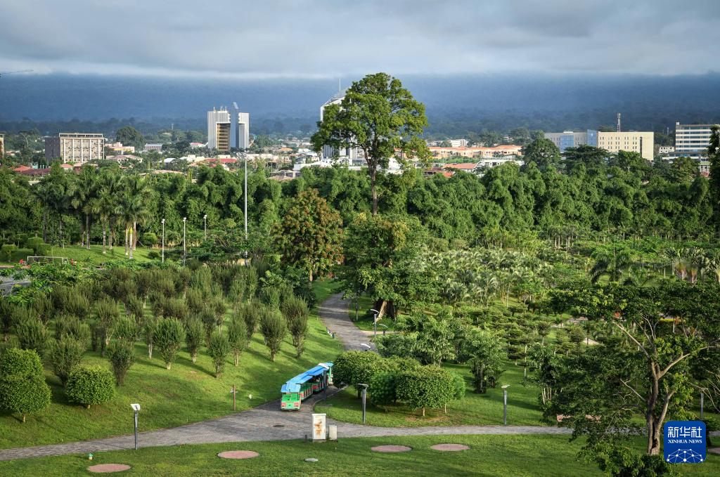 这是5月18日在赤道几内亚首都马拉博拍摄的马拉博国家公园和城市风光。