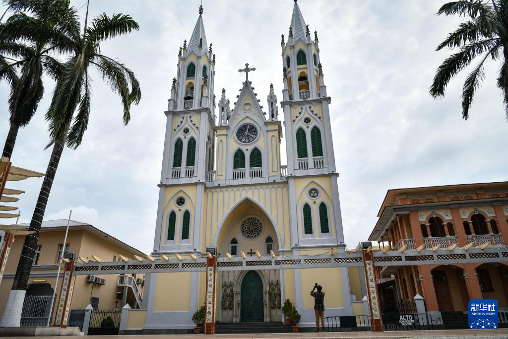 这是5月20日在赤道几内亚首都马拉博拍摄的圣伊丽莎白大教堂。