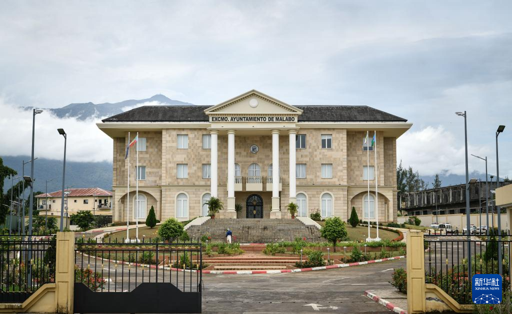 这是5月18日在赤道几内亚首都马拉博拍摄的马拉博市政厅。