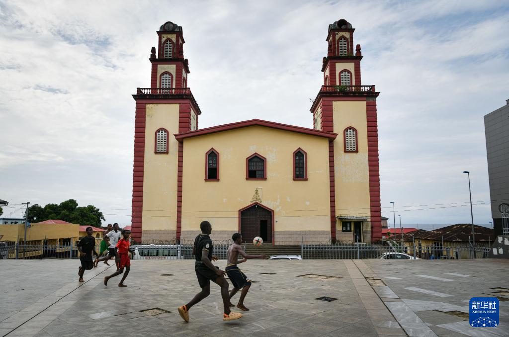 5月20日,人们在赤道几内亚首都马拉博圣费尔南多广场踢球。