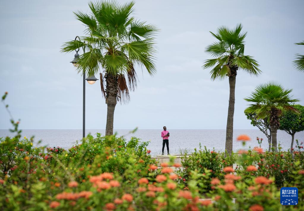 这是5月18日在赤道几内亚首都马拉博拍摄的滨海大道一隅。