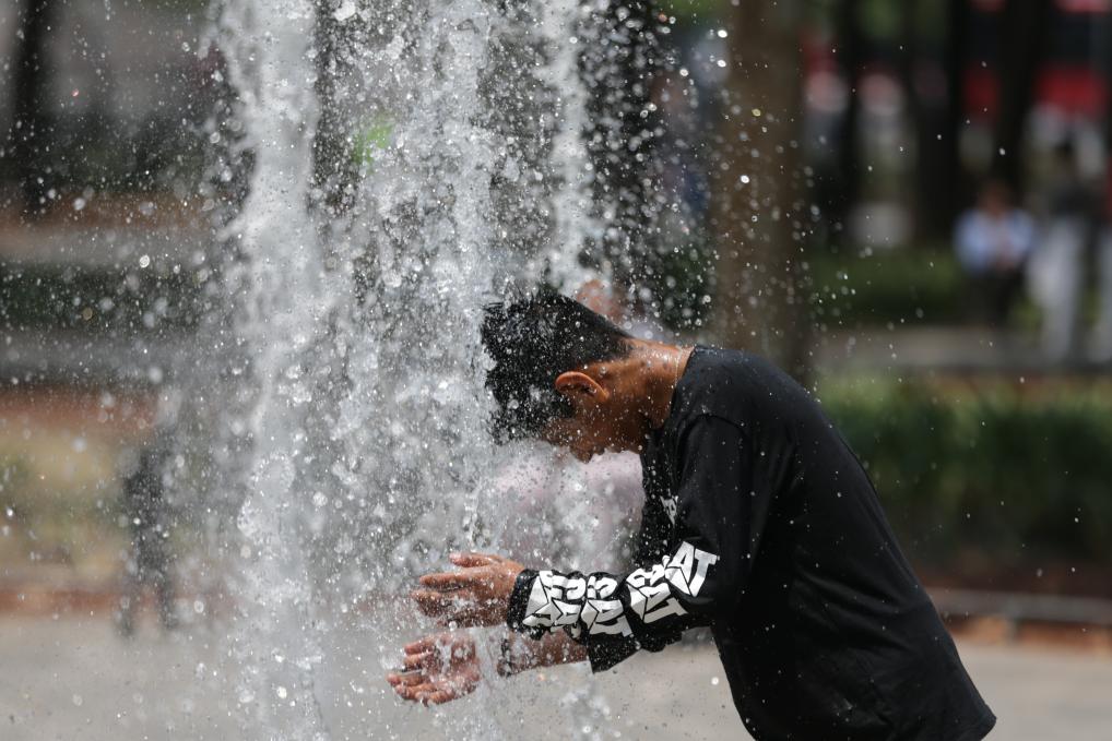 2024年5月15日,在墨西哥首都墨西哥城,市民戏水消暑。新华社发(弗朗西斯科·卡涅多摄)