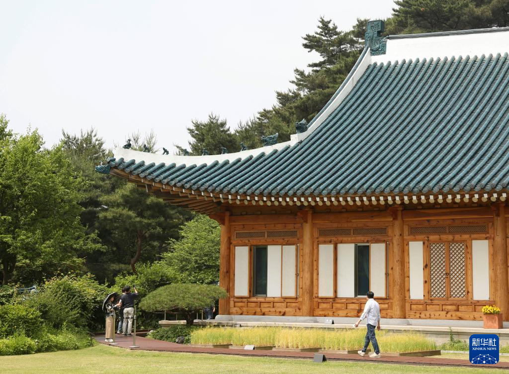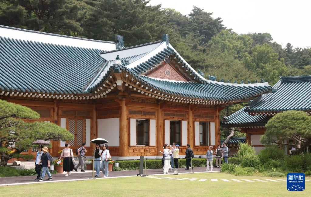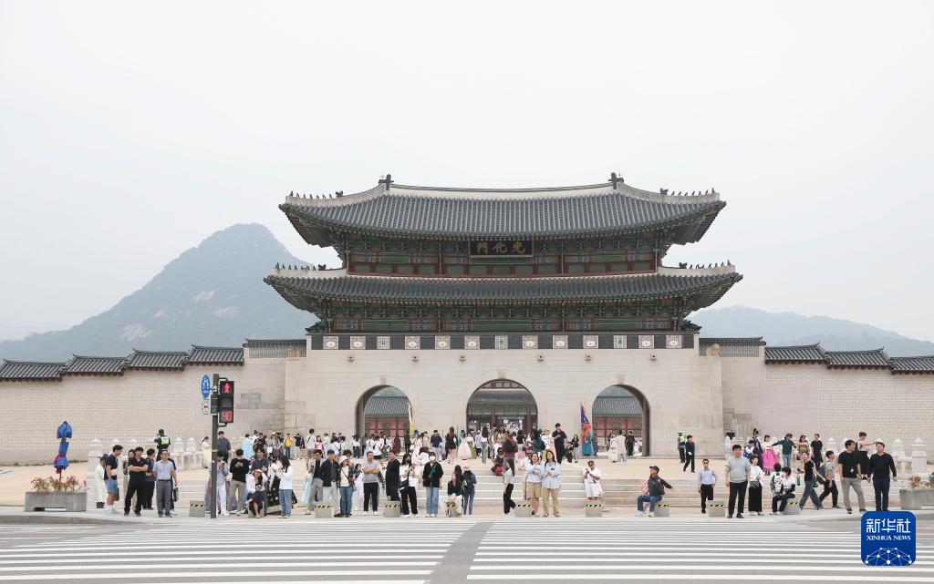 5月24日,游客在韩国首尔市中心的光化门广场参观。