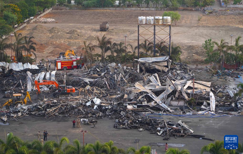 印度一游乐园火灾死亡人数增至33人-这是5月26日在印度古吉拉特邦拉杰果德市拍摄的火灾现场。'...