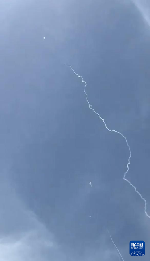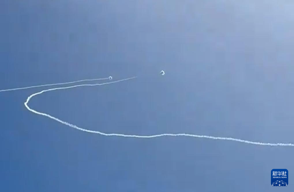 这张以色列媒体发布的视频截图显示,5月26日,以色列“铁穹”防空系统在特拉维夫上空拦截火箭弹。