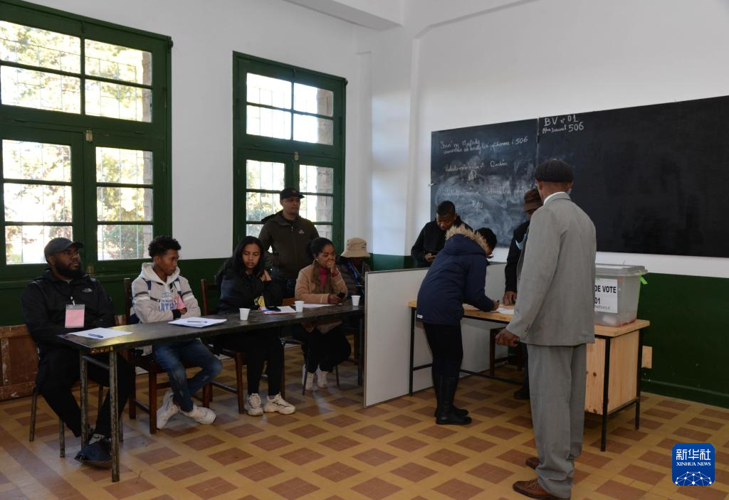 5月29日,在马达加斯加塔那那利佛,选民在一处投票站准备投票。