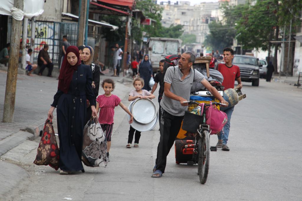 5月28日,在加沙地带南部城市拉法,人们逃离家园。联合国近东巴勒斯坦难民救济和工程处当天在社交媒体上表示,以色列5月初以来在拉法的军事行动已迫使近100万人逃离。新华社发(哈立德·奥马尔摄)