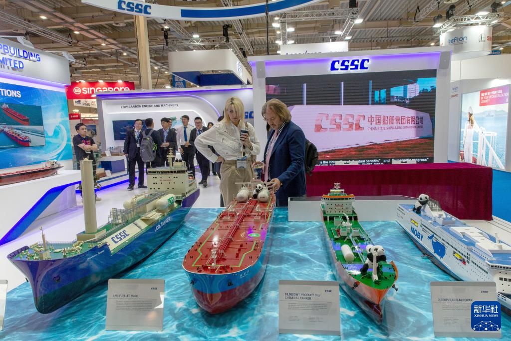 6月3日,人们在希腊雅典举办的波塞冬国际海事展上参观中国企业展台。