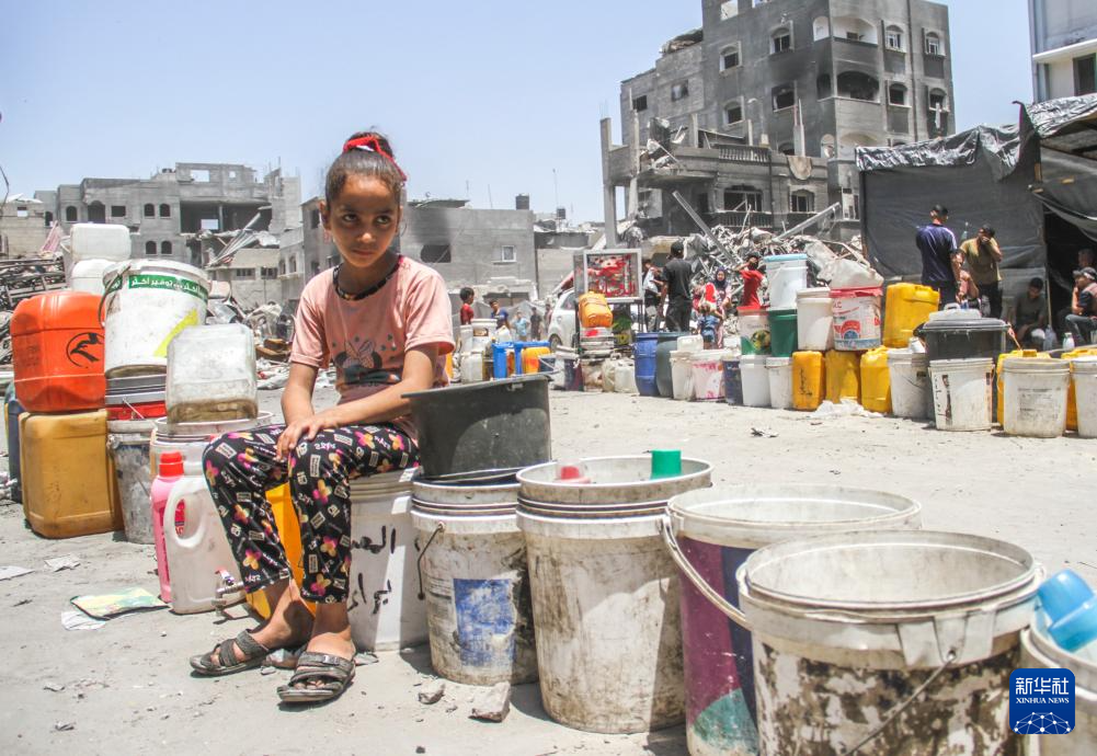 6月4日,在加沙地带北部杰巴利耶难民营,一名女孩等待取水。