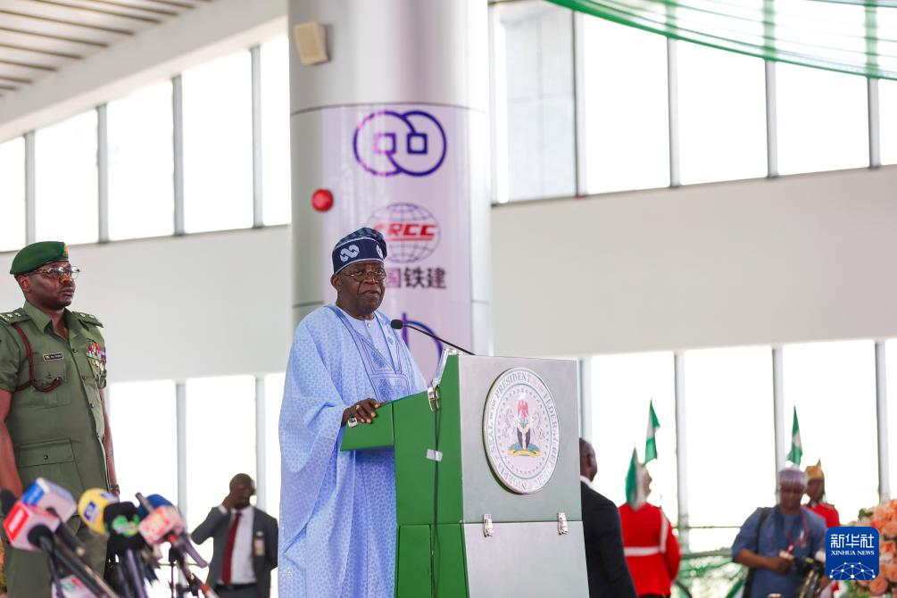 5月29日,尼日利亚总统提努布在阿布贾城铁商业运营启动仪式上讲话。新华社发(闫玉娟摄)
