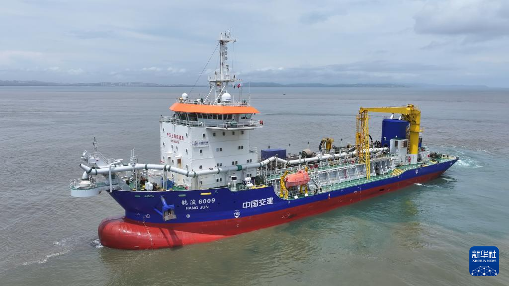 6月6日,中交上海航道局的“航浚6009”轮在哥伦比亚巴兰基亚港作业。