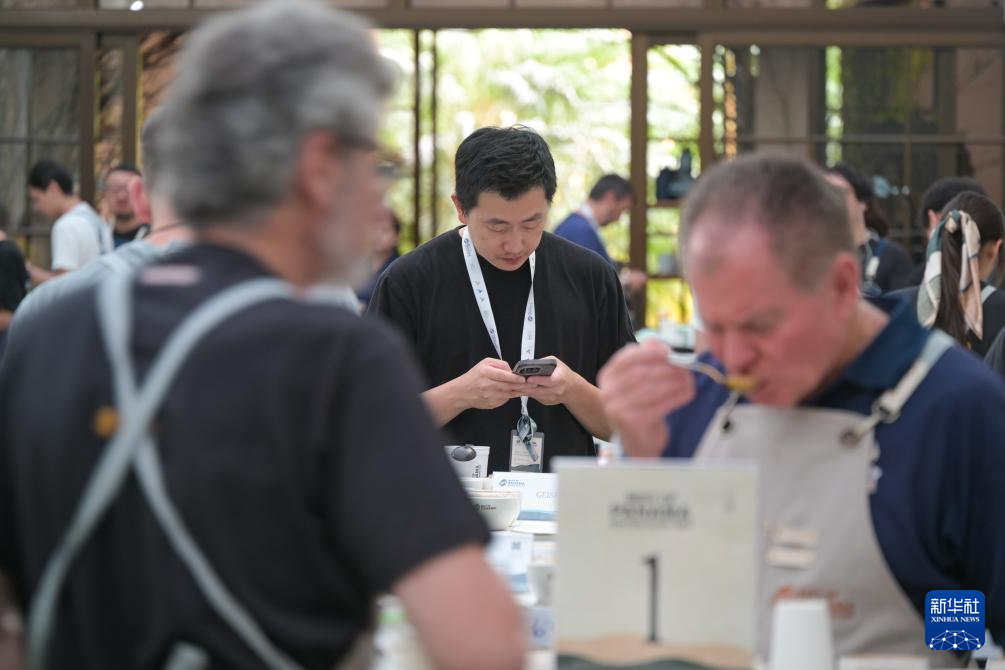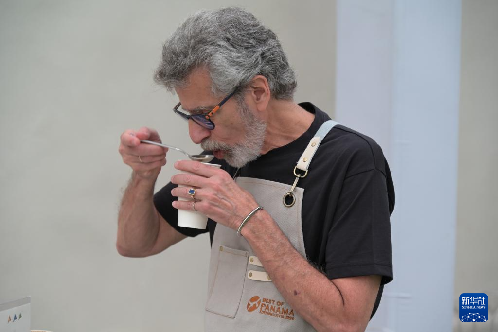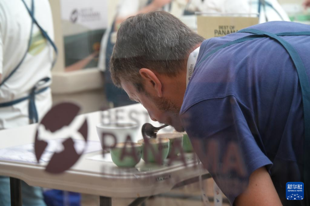 6月8日,在巴拿马西部城市博克特,一名国际评委在第28届“巴拿马最佳”咖啡生豆大赛上进行咖啡杯测。