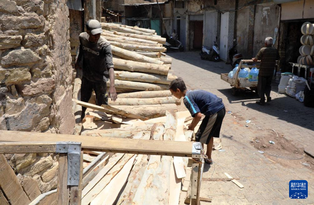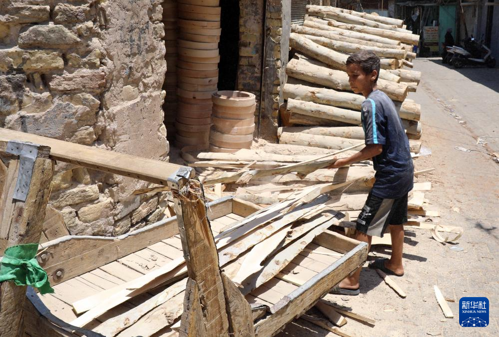 6月8日,在伊拉克巴格达,一名儿童在一家木工作坊工作。