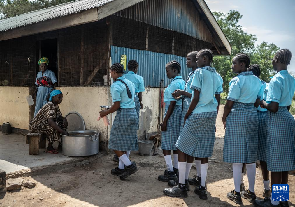 6月18日,在肯尼亚图尔卡纳郡卡库马难民营内,毕生希望女子中学的学生在课间茶歇。
