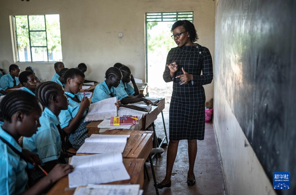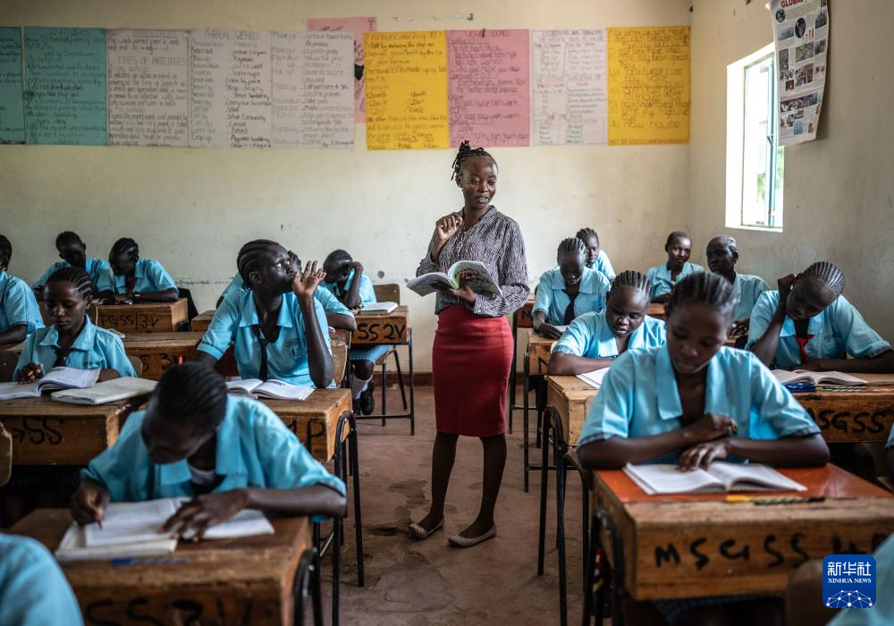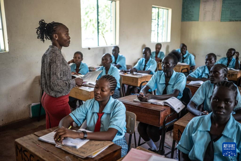 6月18日,在肯尼亚图尔卡纳郡卡库马难民营内,毕生希望女子中学的学生在教室内上课。