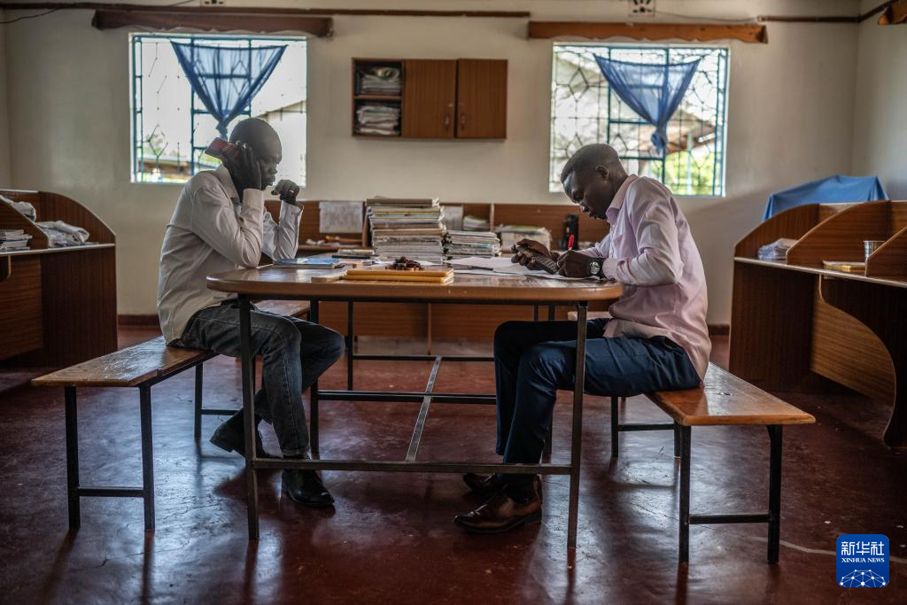 6月18日,在肯尼亚图尔卡纳郡卡库马难民营内,毕生希望女子中学的教师在批改作业。