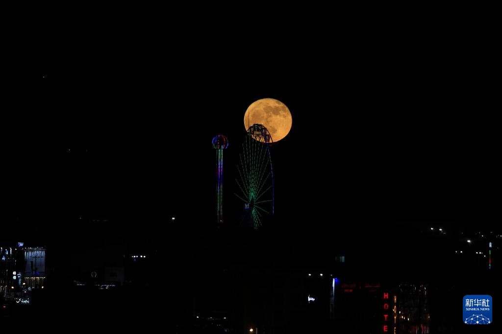 这是6月22日在约旦首都安曼拍摄的圆月。