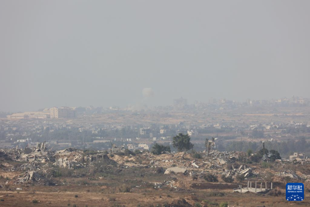 这是6月23日在以色列与加沙边境以方一侧拍摄的加沙地带遭破坏的景象。