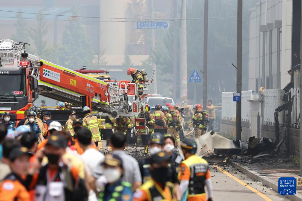 6月24日,消防员在韩国京畿道华城市的电池工厂火灾现场工作。新华社/美联