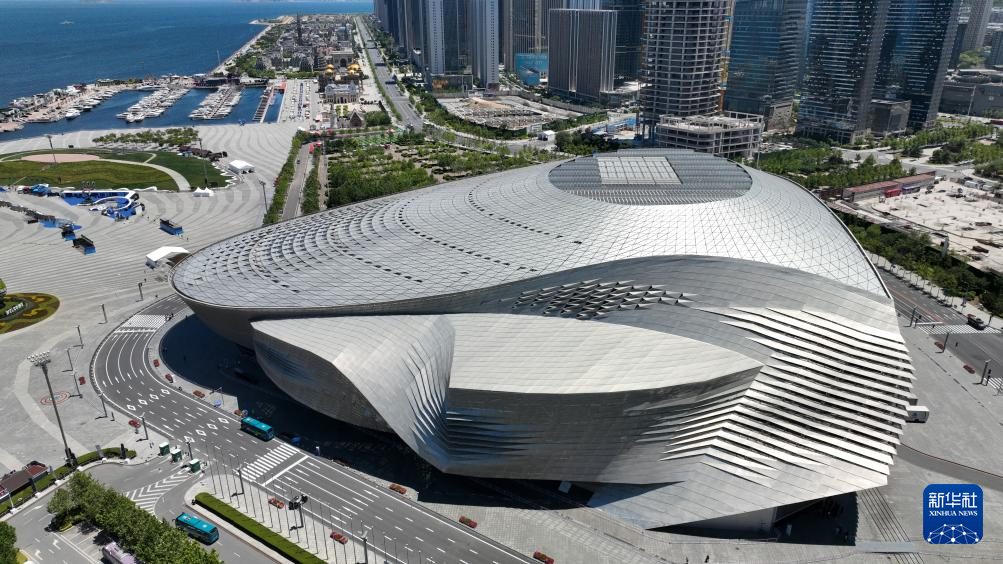 6月24日拍摄的夏季达沃斯论坛主会场大连国际会议中心(无人机照片)。