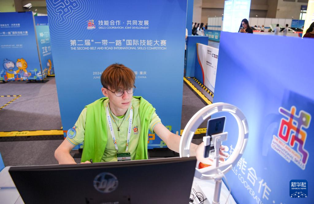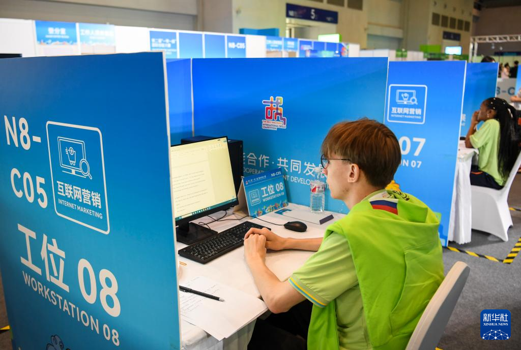 6月24日,第二届“一带一路”国际技能大赛互联网营销项目选手在比赛中。新华社记者 王全超 摄pagebreak
