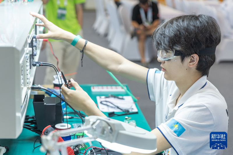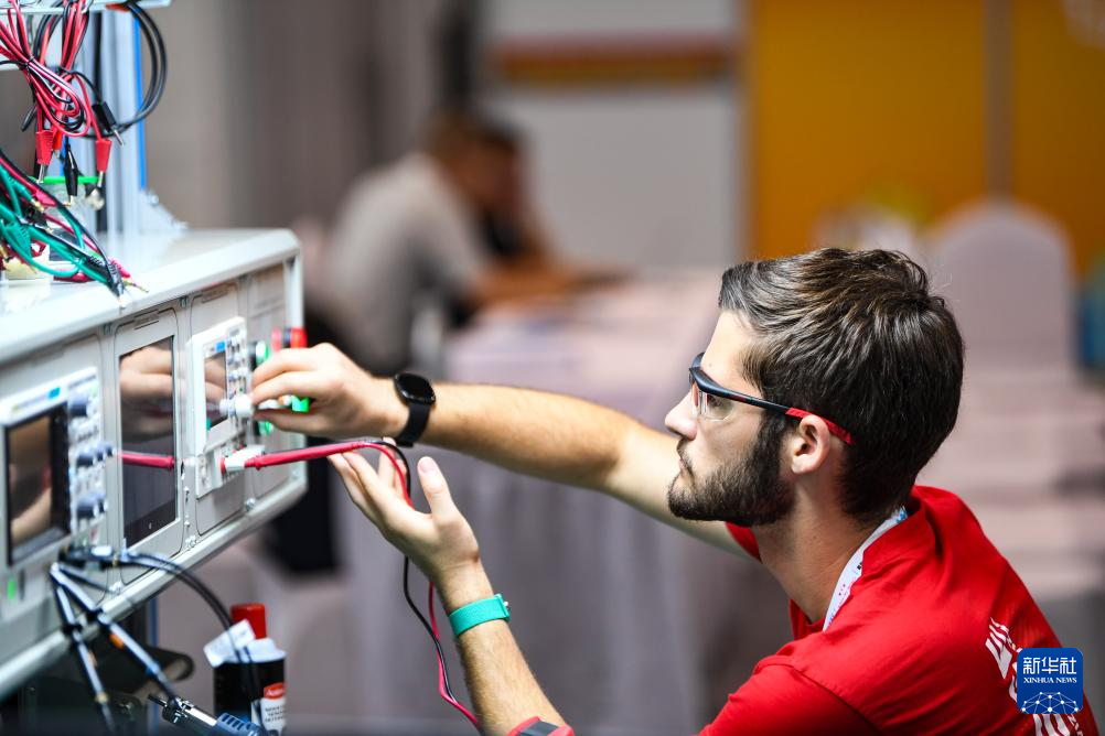 6月24日,第二届“一带一路”国际技能大赛电子技术项目选手在比赛中。新华社记者 王全超 摄pagebreak