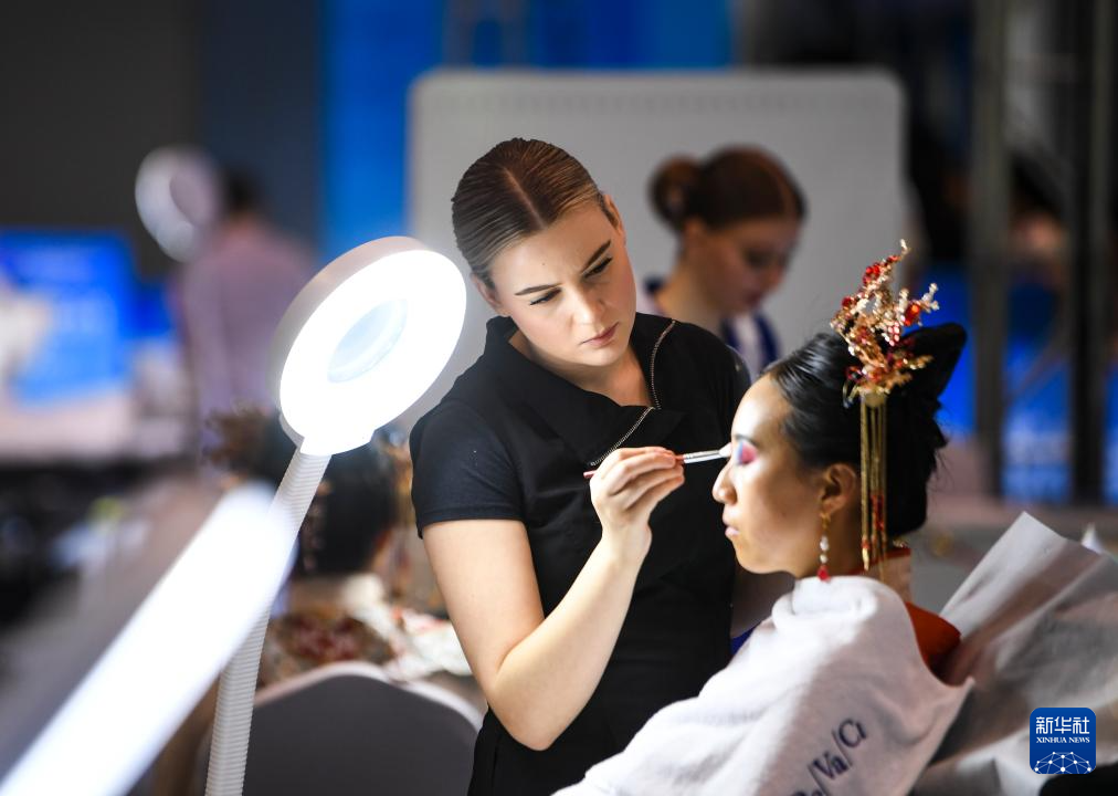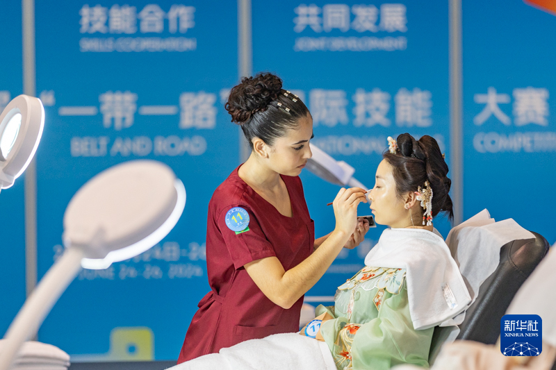 6月24日,第二届“一带一路”国际技能大赛美容项目选手在比赛中。新华社记者 王全超 摄pagebreak